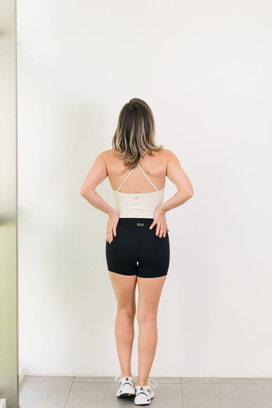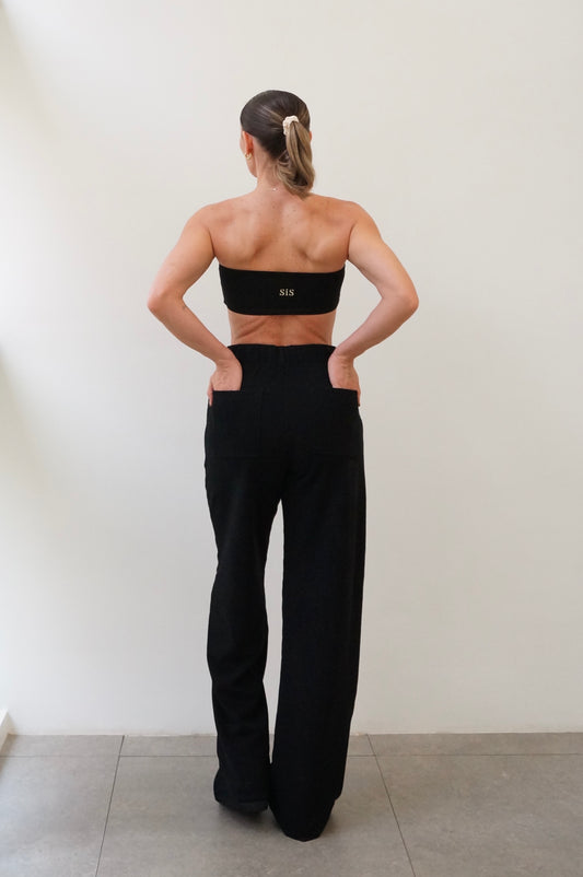 V DRAPED WAISTBAND LEGGINGS BLACK